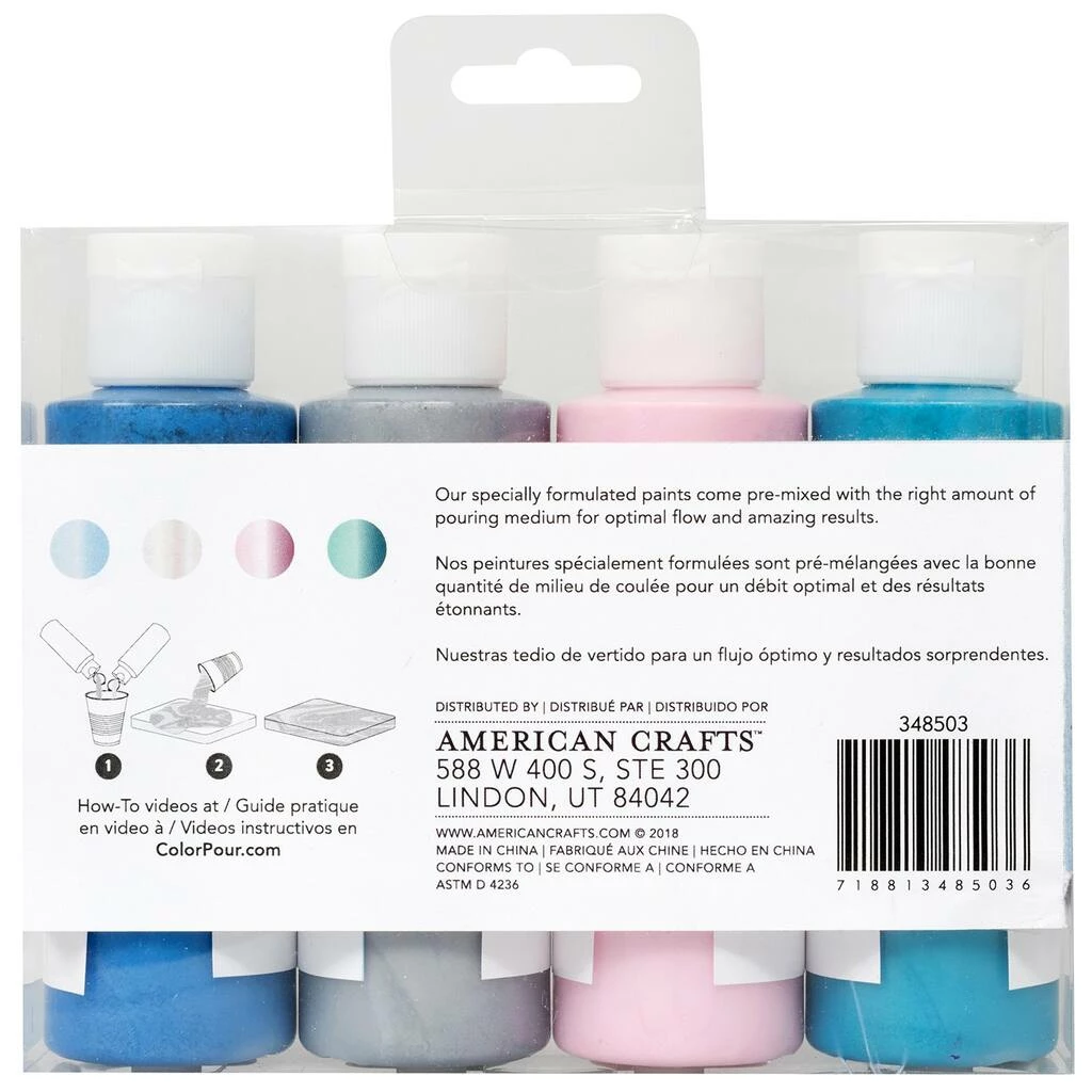 American Crafts Color Pour system allows you to create colorful masterpieces easily with the perfect consistency of water-based acrylic paints.