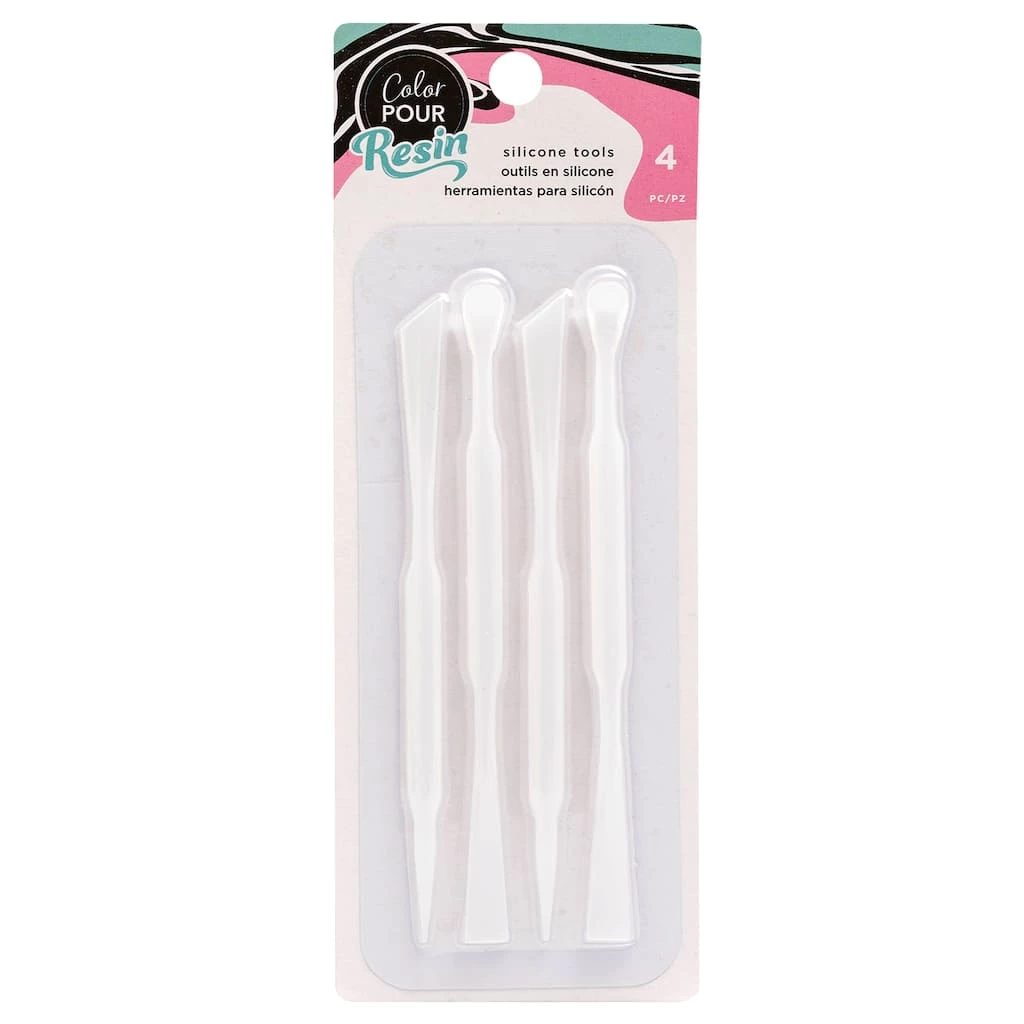 Silicone tools are the perfect way to get amazing, detailed resin projects in no time. Use them to add small details, mix mediums, add powders, and more. Clean after use for best results. This package includes 4 silicone tools for resin projects.