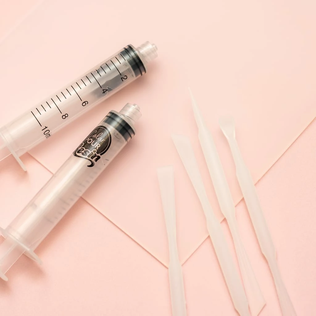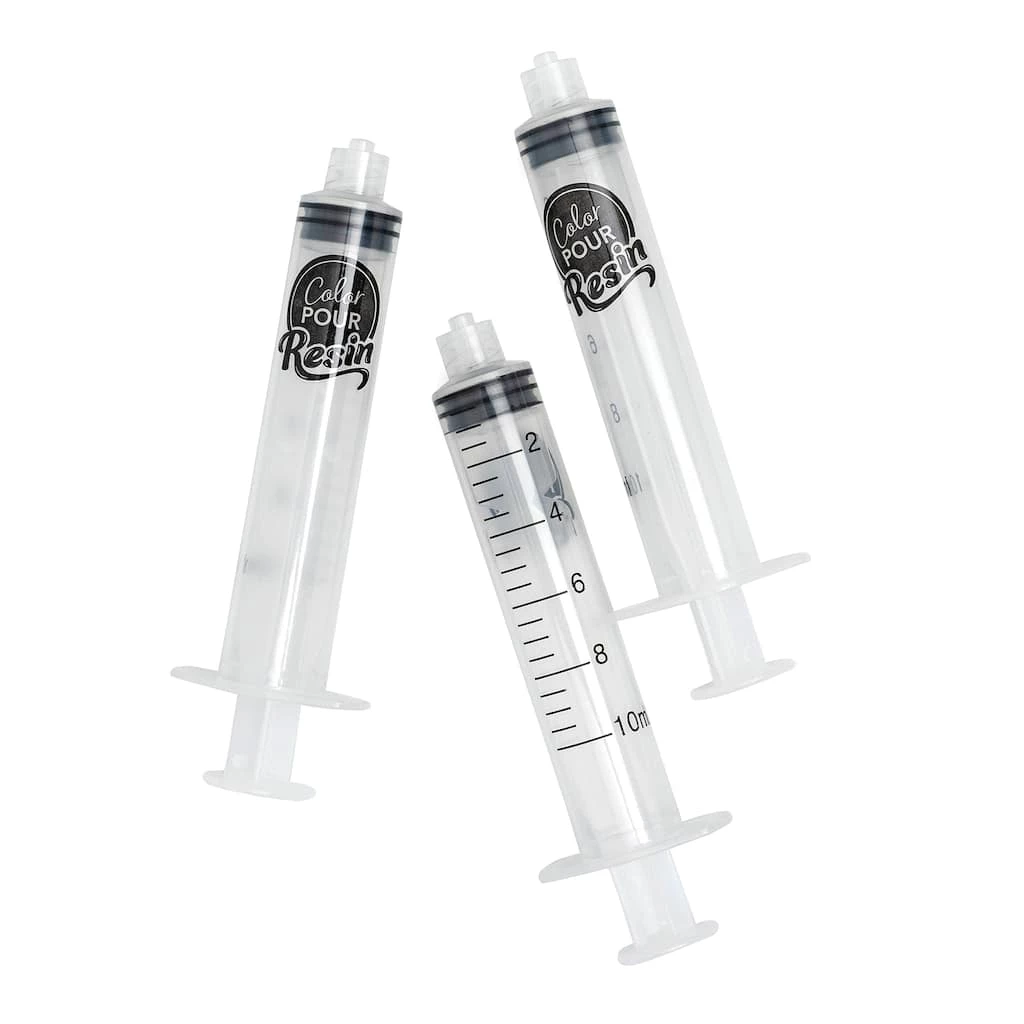 These resin syringes are perfect for adding resin to smaller projects like earrings and other jewelry. Or try them out for small details on large projects. Clean immediately after use for best results. This package includes 3 syringes.