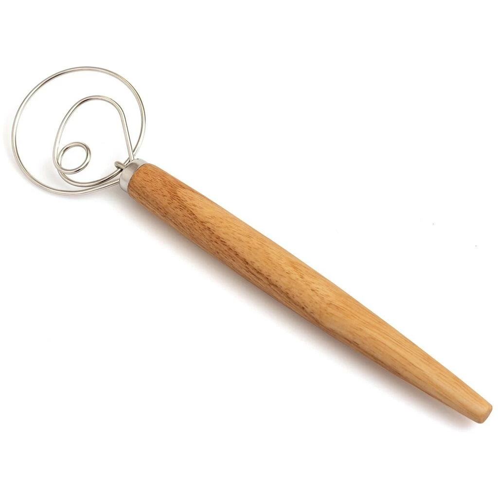This dough whisk is an efficient mixing tool that doesn’t get clogged like a traditional whisk. The wire loops cut through stiff doughs and thick batters, combining the ingredients without creating extra gluten.