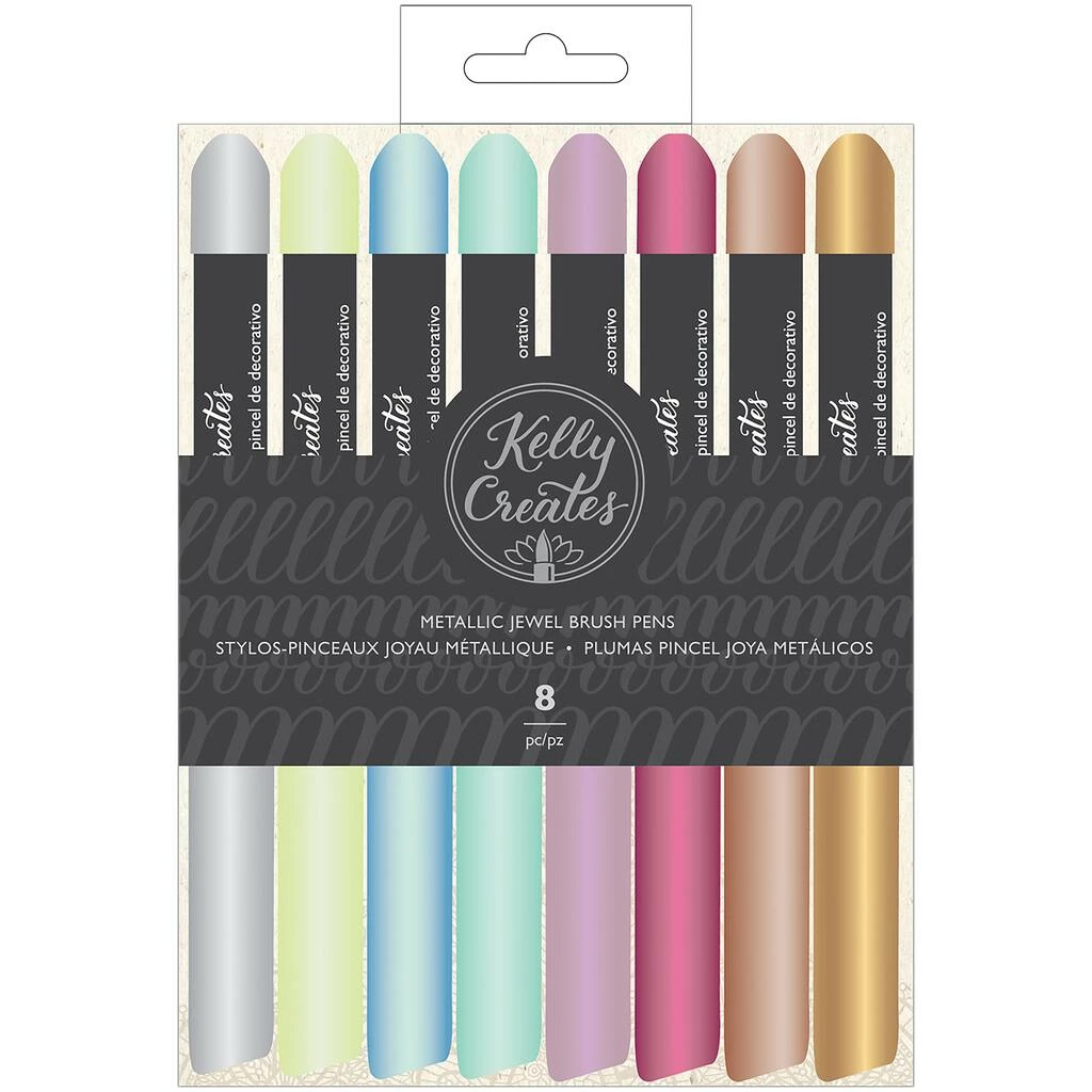Metallic brush pens that shine on both black and white paper! This 4 package contains eight metallic jewel brush pens in eight different colors: silver, emerald, sapphire, jade, amethyst, ruby, bronze and gold.