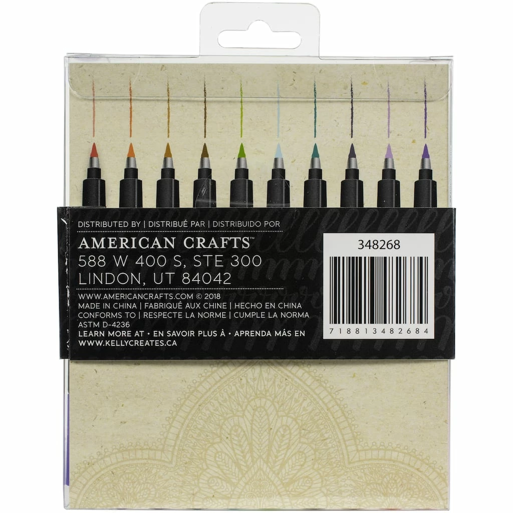 A pen set that’s perfect for hand lettering! Whether you’re a beginner or a pro, these pens are perfect for you to use in cards, scrapbooks or journals. Set colors include red, orange, light brown, brown, green, light blue, turquoise, dark blue, light purple, and purple.