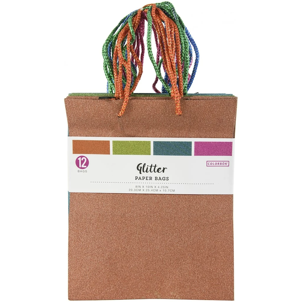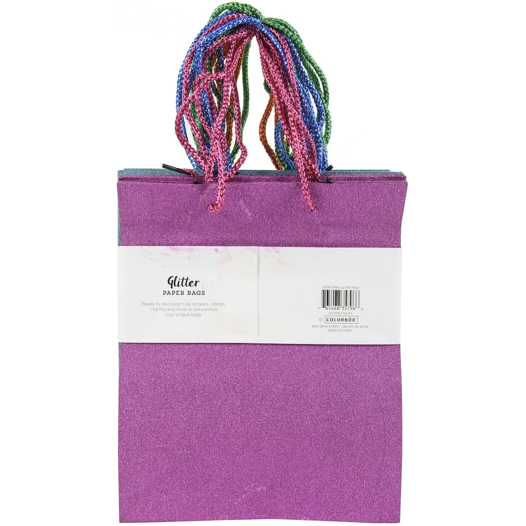 Ready to decorate! use stickers, ribbon, charms and more to personalize your unique bags. This package contains 12 glitter paper bags in four colors (three of each color). Imported.