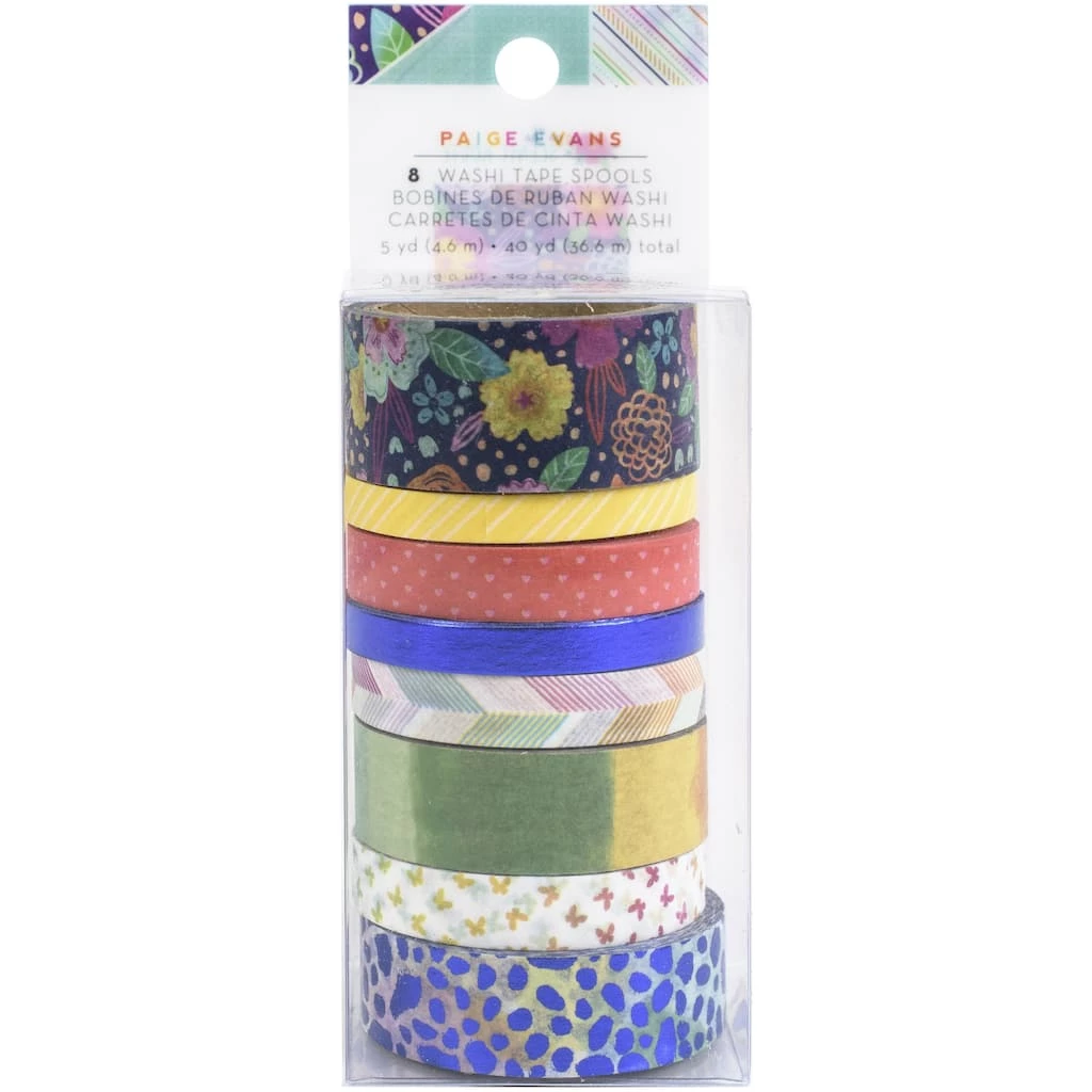 This tape is perfect to use on any of your paper projects! This package contains eight 5yd. rolls of washi tape in assorted widths and designs.