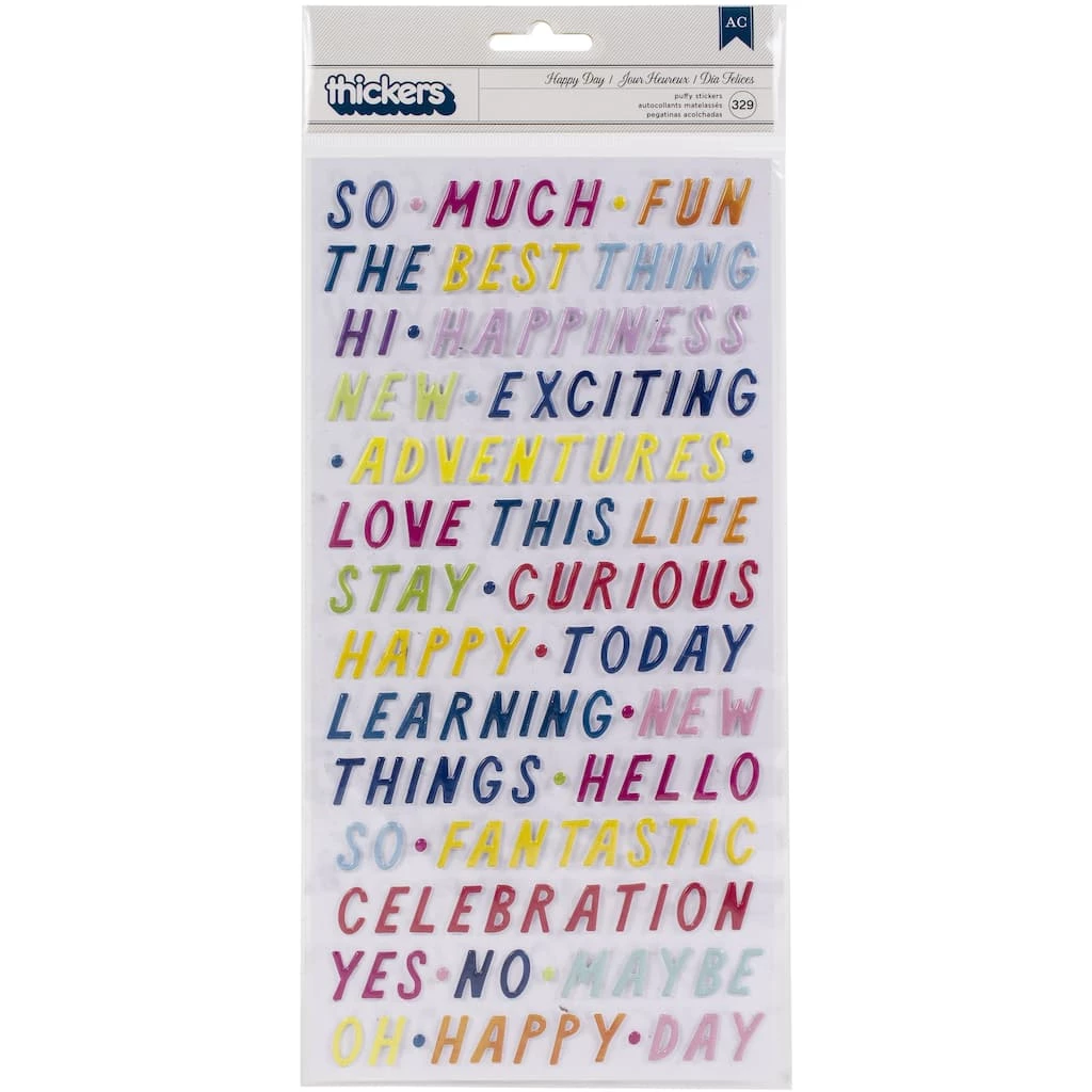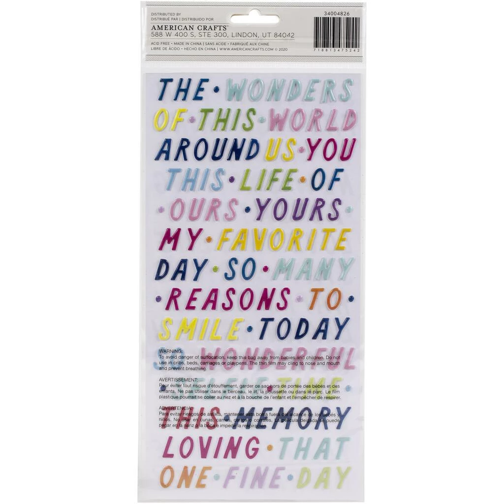 Add a pop of color and a cute phrase to your projects with Thickers! They’re great for scrapbook pages, handmade cards, journals, planners, and so much more. This package includes Thickers phrases and embellishments in a variety of colors.