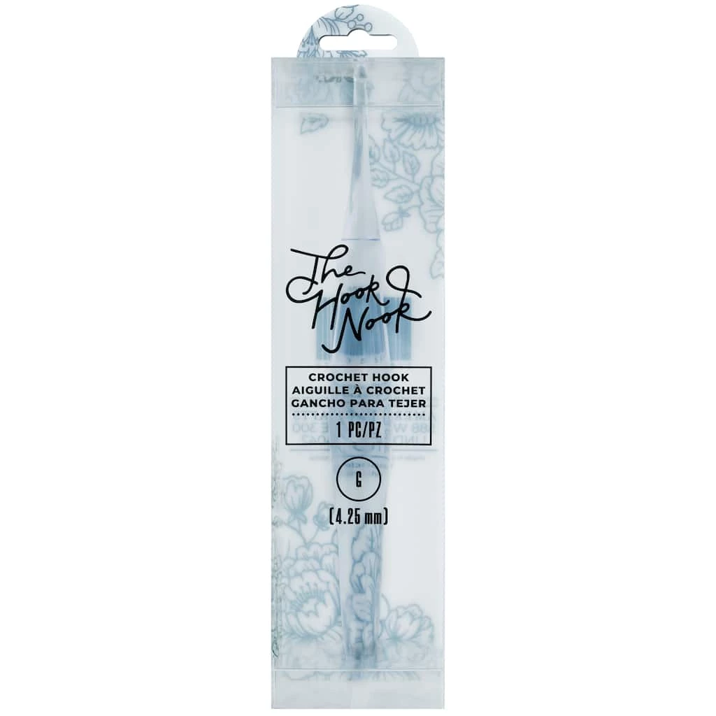 The American Crafts The Hook nook collection brings crochet into the modern world. This designer (size G) diamond crochet hook is transparent, resin, and created to fit your hand properly.