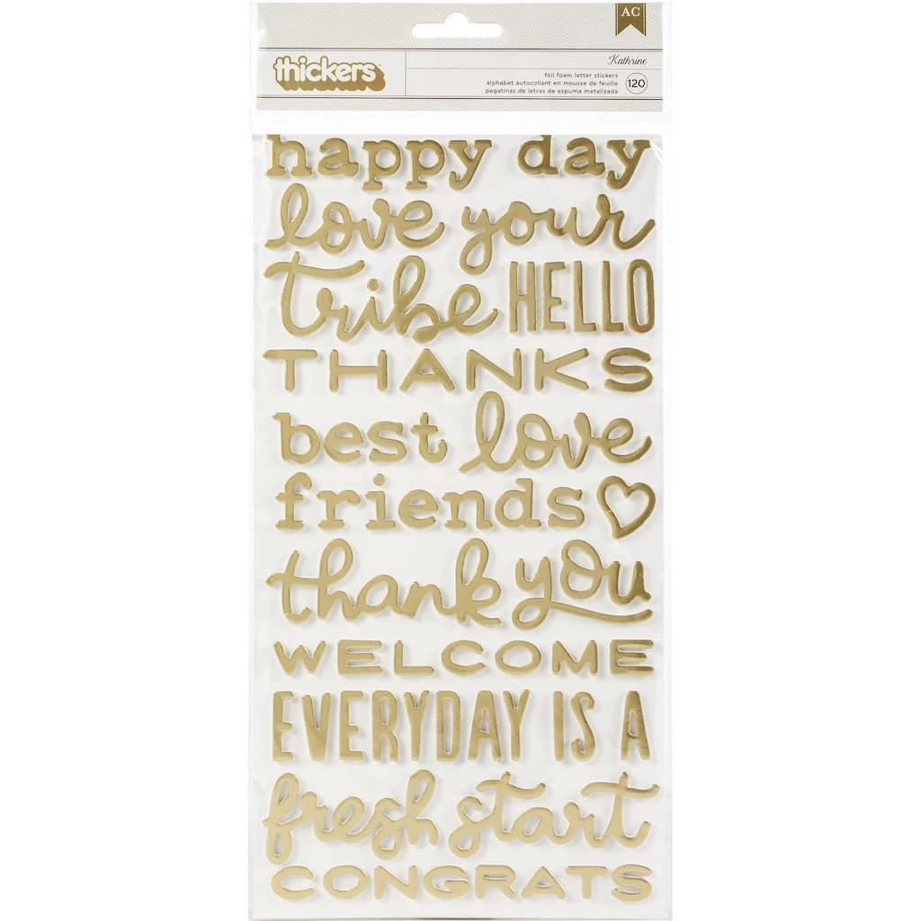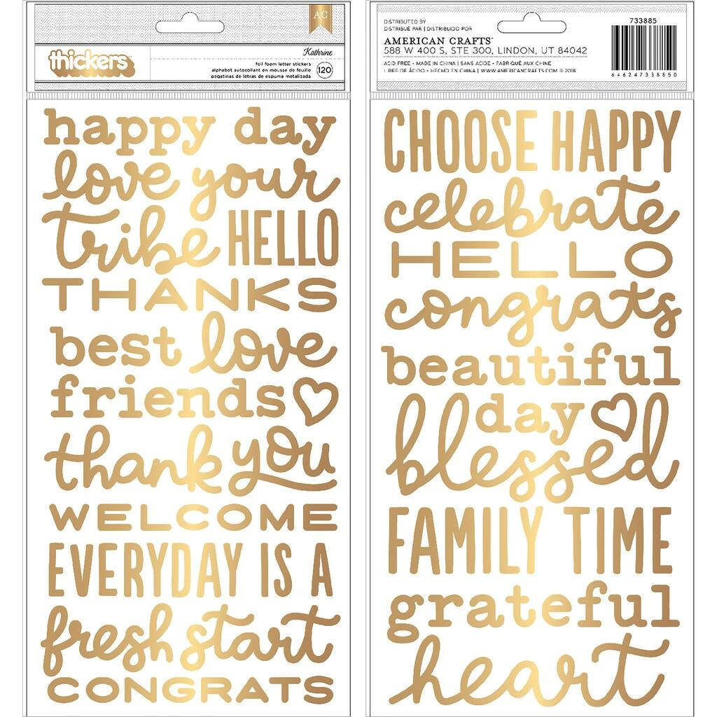 Add gold accents to your scrapbooks, cards and mixed media projects! Perfect for adding eye-catching focal points and depth to your paper projects, this set of phrases stickers is a great addition to your crafting collection.