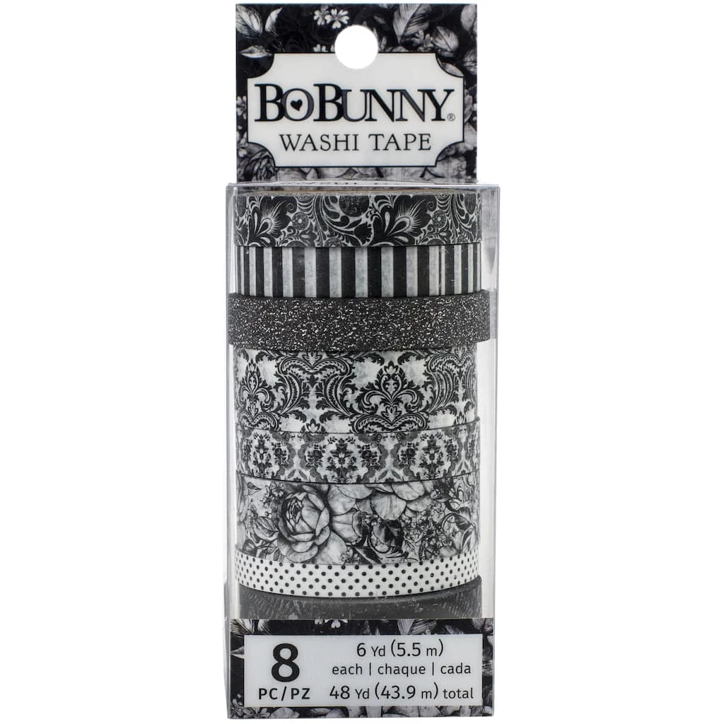 This tape is perfect to use on any of your paper projects! The creative possibilities are endless! This package contains eight 6 yard rolls of washi tape in a variety of widths and designs.