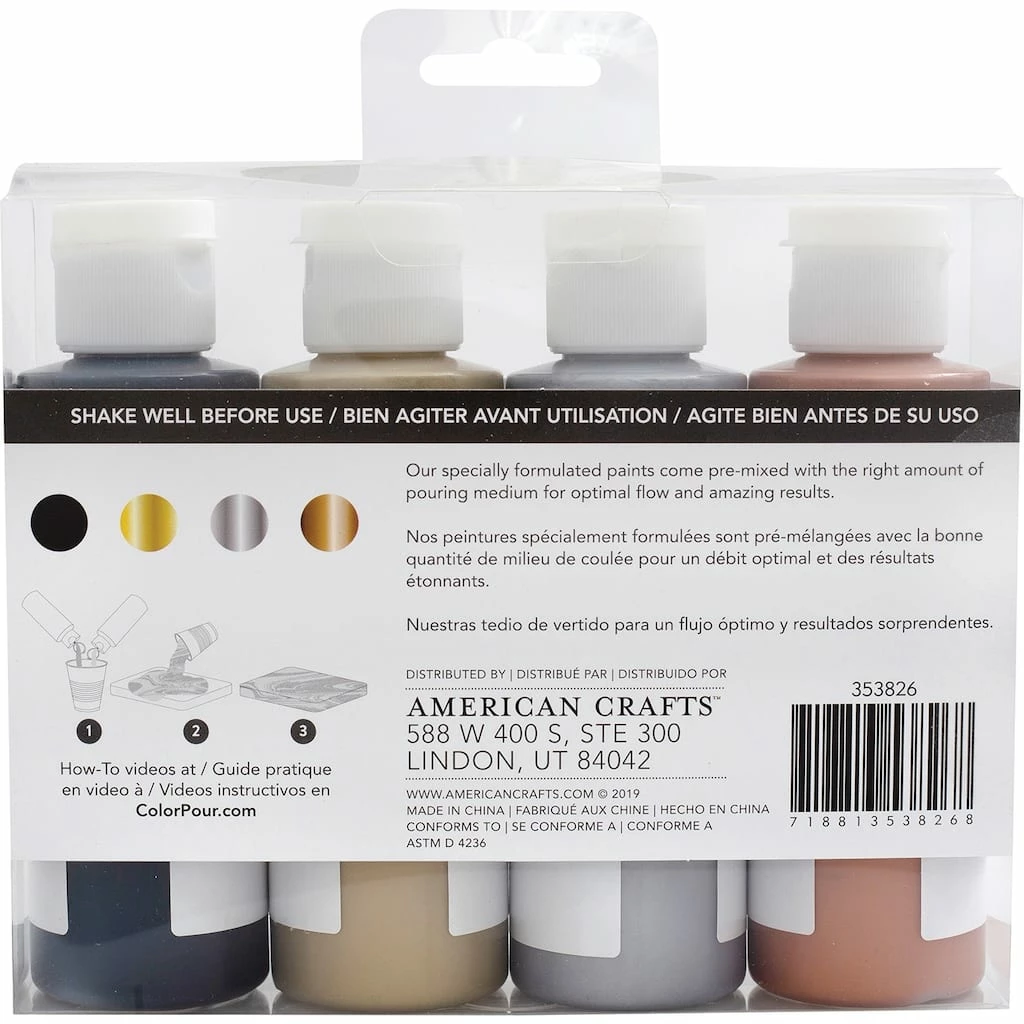 Start your Color Pour creations with this four-pack kit! This specially formulated paint is pre-mixed with the right amount of pouring medium for optimal flow and amazing results.