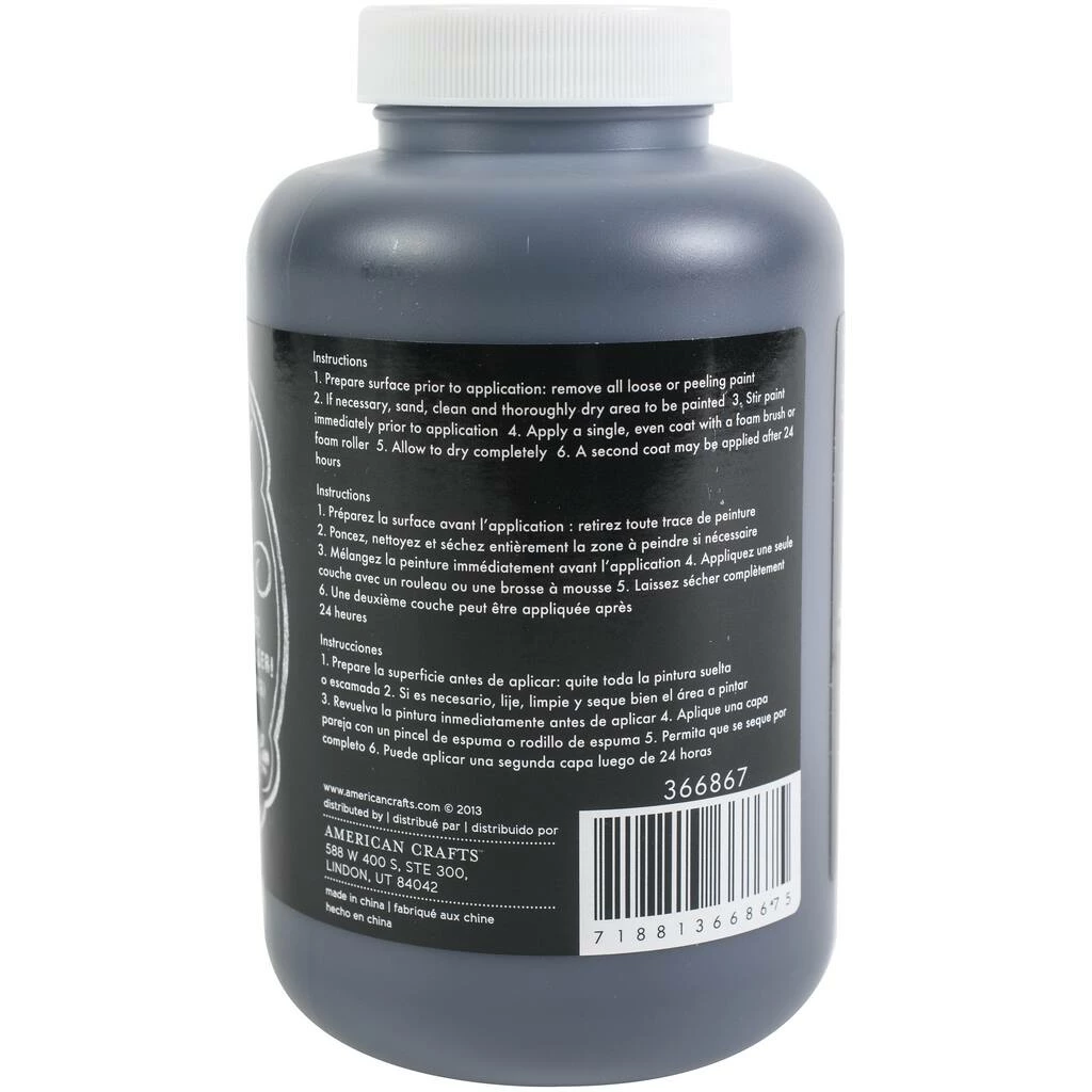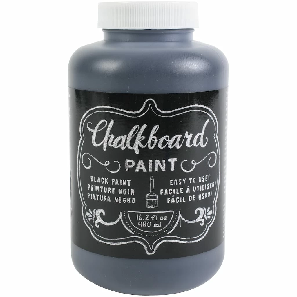 Display your artistic side! Perfect for DIY and home dΓ©cor projects. Works on wood, paper and more. This package contains one 16.2 oz. jar of black chalkboard paint. Imported.
