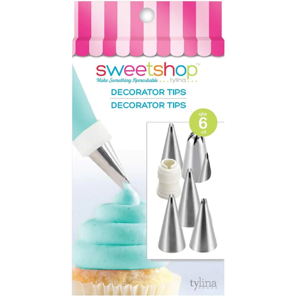 Use these decorating tips to start decorating your baked goods. This package contains five tips and one coupler. Imported.
